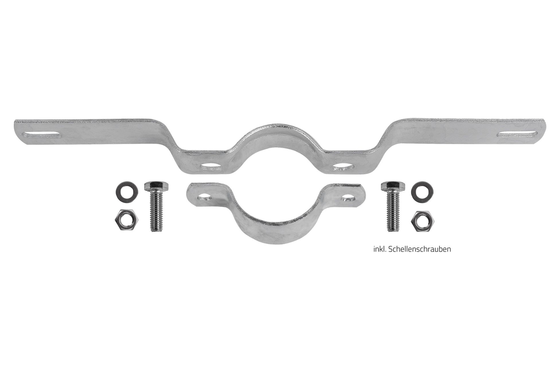 Kostenlos dazu inkl. 2x M8x25 DIN 933 A2, 2x Mutter M8 DIN 934 A2 und 2 U-Scheiben M( DIN 125 A2 !! für die Befestigung der Schelle am Pfosten,